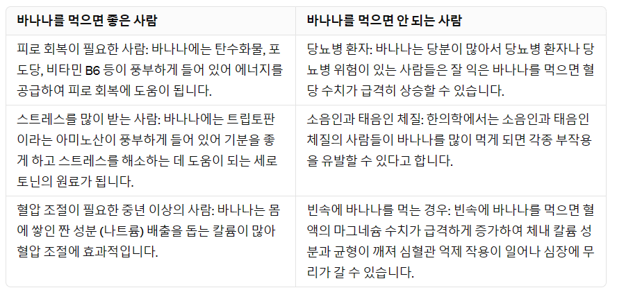 ※ 바나나를 먹으면 좋은 사람 vs 바나나를 먹으면 안 되는 사람